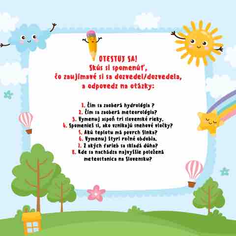 4. Spomenieš si, ako vznikajú snehové vločky? 5. Akú teplotu má povrch Slnka?