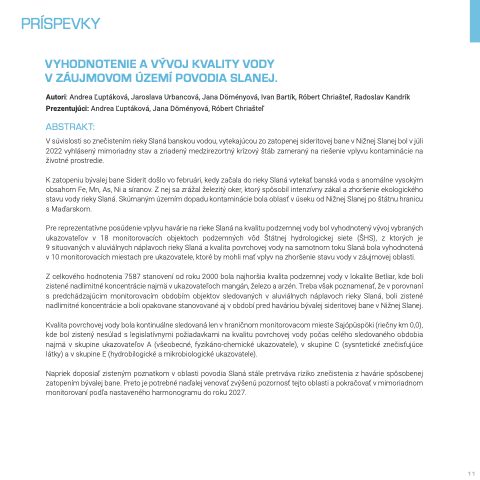 VYHODNOTENIE A VÝVOJ KVALITY VODY V ZÁUJMOVOM ÚZEMÍ POVODIA SLANEJ.